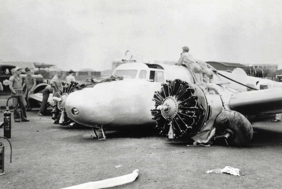 Though the crash took place near the end of the long runway, far from those who witnessed it, there is speculation that the plane first began to sway under the sloshing of its unusually heavy load of fuel for the long flight, then a tire blew out about the time it hit a patch of wet grass. The convergence of these events caused the plane to veer. As a wing began to dip precariously, Earhart adjusted the throttles in an attempt to level the craft. For a second it looked as if she had succeeded. But the swaying caused by the shifting of the fuel increased, became too much, and when the weight of the plane briefly rested on a single landing gear, it gave way. A wing slashed into the ground, spinning the plane as it skidded along the runway. Only Earhart’s quick cutting of the ignition switches kept a fire from breaking out that would have been fed by 900 gallons of aviation fuel easily capable of engulfing the aircraft and its passengers.