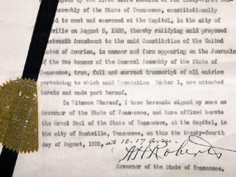 Tennessee’s certificate of ratification, now on a train from Nashville to Washington, D.C.