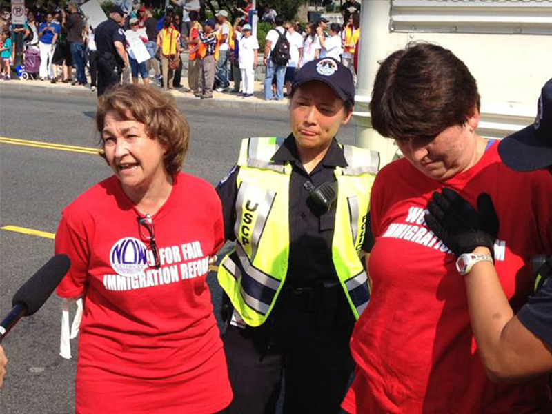 Thursday, nearly 300 people were arrested in front of the White House during a rally calling on President Barack Obama to halt mass deportations. Among them was Terry O’Neill, President of the National Organization for Women (NOW).