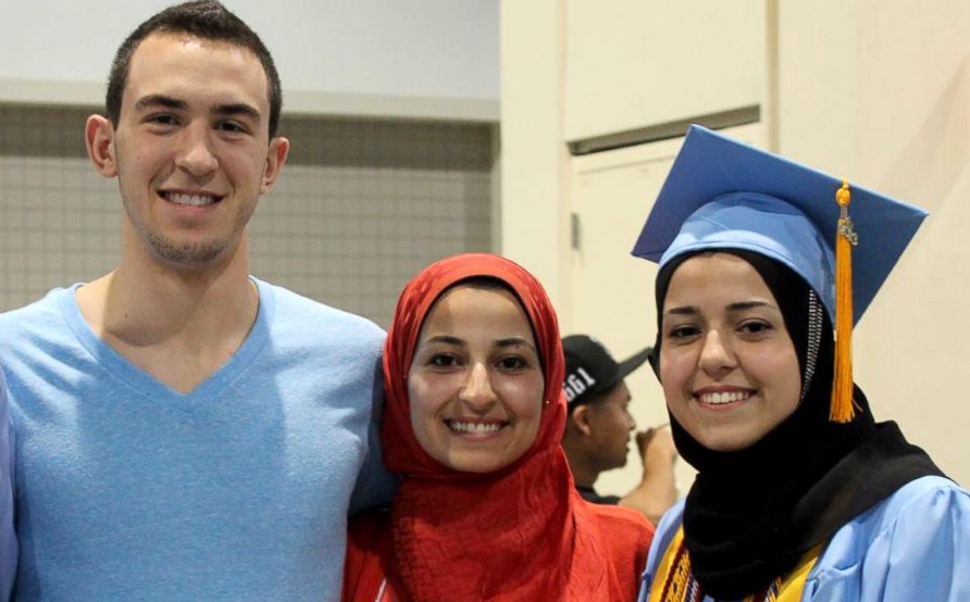 The victims, Yusor Mohammad and her husband, Deah Shaddy Barakat, and sister, Razan Mohammad Abu-Salha, were all students in their late teens or early 20s; they were shot in the head and pronounced dead on the scene. Craig Stephen Hicks, a 46-year-old white man, turned himself in to the police and is being charged with three counts of first-degree murder.