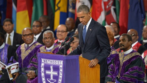 President Obama knew Reverend Pinckney personally, meeting him during his 2008 election campaign. He recounted Pickney’s impressive life, as he became a pastor at age 13, a minister at 18, and was the youngest African American to be elected to a position in the South Carolina House at just 23. The President spoke of Reverend Pickney’s kind spirit, calling him a good man and saying he was “full of empathy and fellow feeling.”