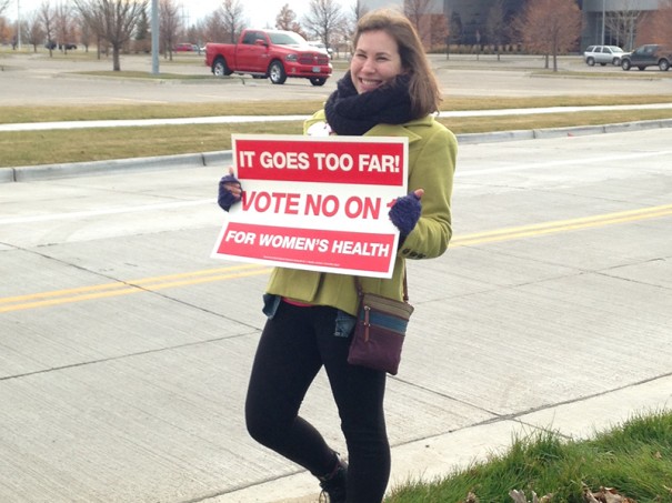 Feminist Majority Foundation field organizers in North Dakota, where students have been mobilizing the vote against Measure 1, a proposed personhood amendment, have reported a stream of voters at the Fargodome, where about a quarter of voters this morning were young people. Organizers braved the cold to hold up Vote NO posters visible to those driving by the Fargodome. They were greeted by voters honking their horns in support and giving the thumbs up. Over in Grand Forks, North Dakota, the mood is also upbeat, with students increasing visibility for Election Day.